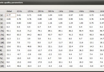 Todos os 14 parâmetros são calculados por banda de 1/1 oitava entre 63 Hz e 16 kHz.